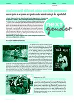 Mit der aktuellen Ausgabe 109 der Zeitschrift »korrespondenz« des Landesjugendrings Niedersachsen wird ein 8-seitiger »neXTgender«-Sonderteil veröffentlicht. Neben den neXTgender-Projektvorstellungen der ...[mehr]