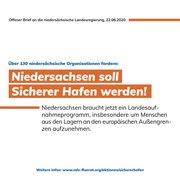 „Die Aufnahmebereitschaft und Solidarität mit Geflüchteten auf kommunaler Ebene ist groß! Doch aufnahmewillige Städte und Kommunen sind auf Sie als Landesregierung angewiesen, damit die Aufnahme zusätzlich zur Quote ermöglicht wird. Als breites zivilgesellschaftliches Bündnis möchten wir die große Aufnahmebereitschaft vieler Bürger_innen unseres Landes deutlich zum Ausdruck bringen. Niedersachsen hat die Kapazität, noch viele weitere Geflüchtete aufzunehmen und somit ein Sicherer Hafen zu sein.“