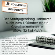 Der Stadtjugendring Hannover e.V. sucht zum 1.10.2020 (oder nach Vereinbarung) in Teilzeit (32 Std./W.)