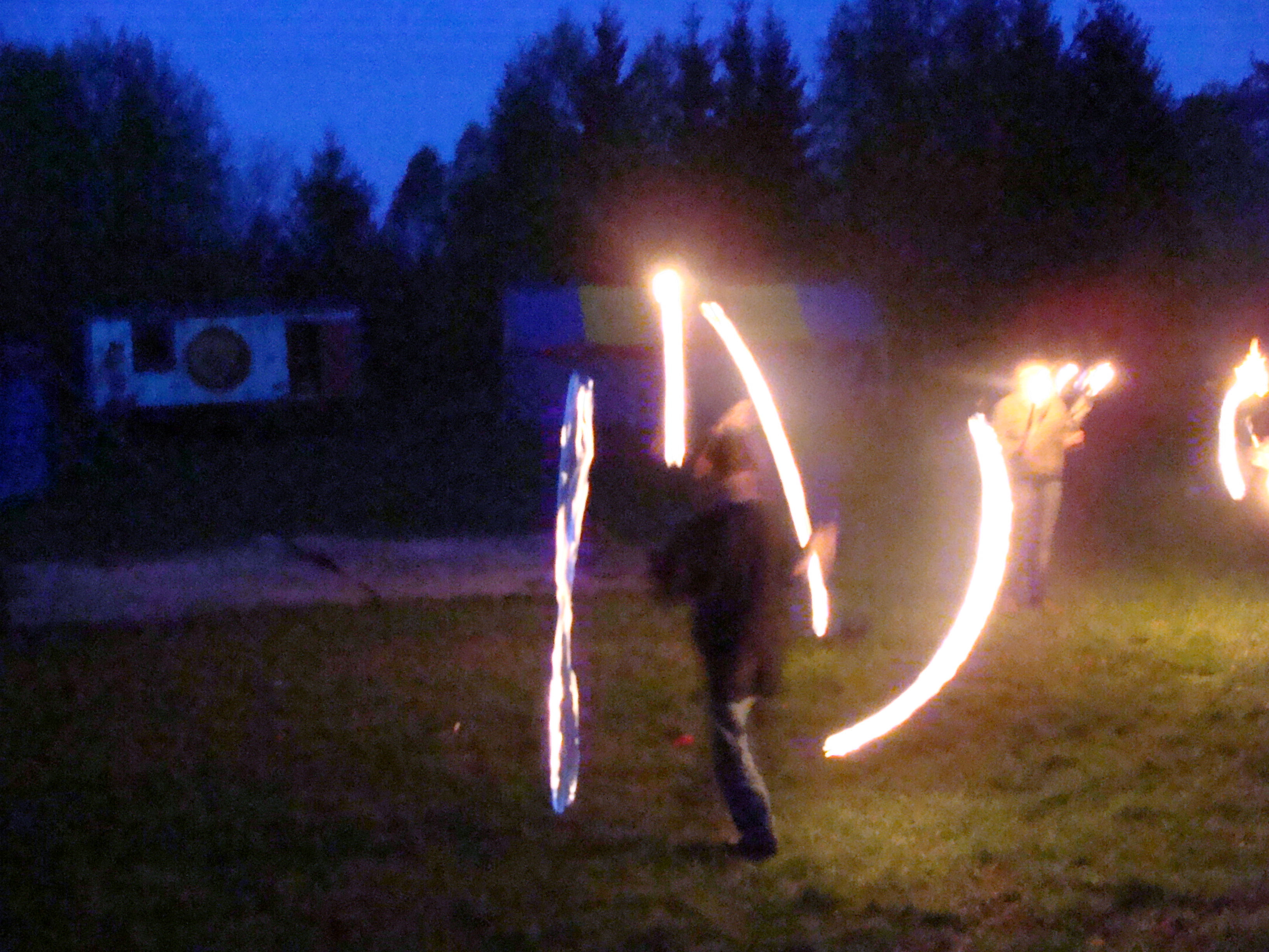 Die Gruppe in den Osterferien bestand aus mehr Jungen als Mädchen. Die Teilnehmenden standen der Idee mit den Inlinern, die das Leitungsteam entwickelt hatte, sehr zögerlich gegenüber. Letztendlich entschied sich die Gruppe gegen eine Umsetzung bei dieser Freizeit. Stattdessen entwickelte diese Gruppe mit großer Begeisterung viele spannende Clownsnummern. Das besondere waren hierbei Jungen in Frauenrollen und Frauenkleidern, die erfolgreich und gelungen in der Vorstellung prä... mehr | ||